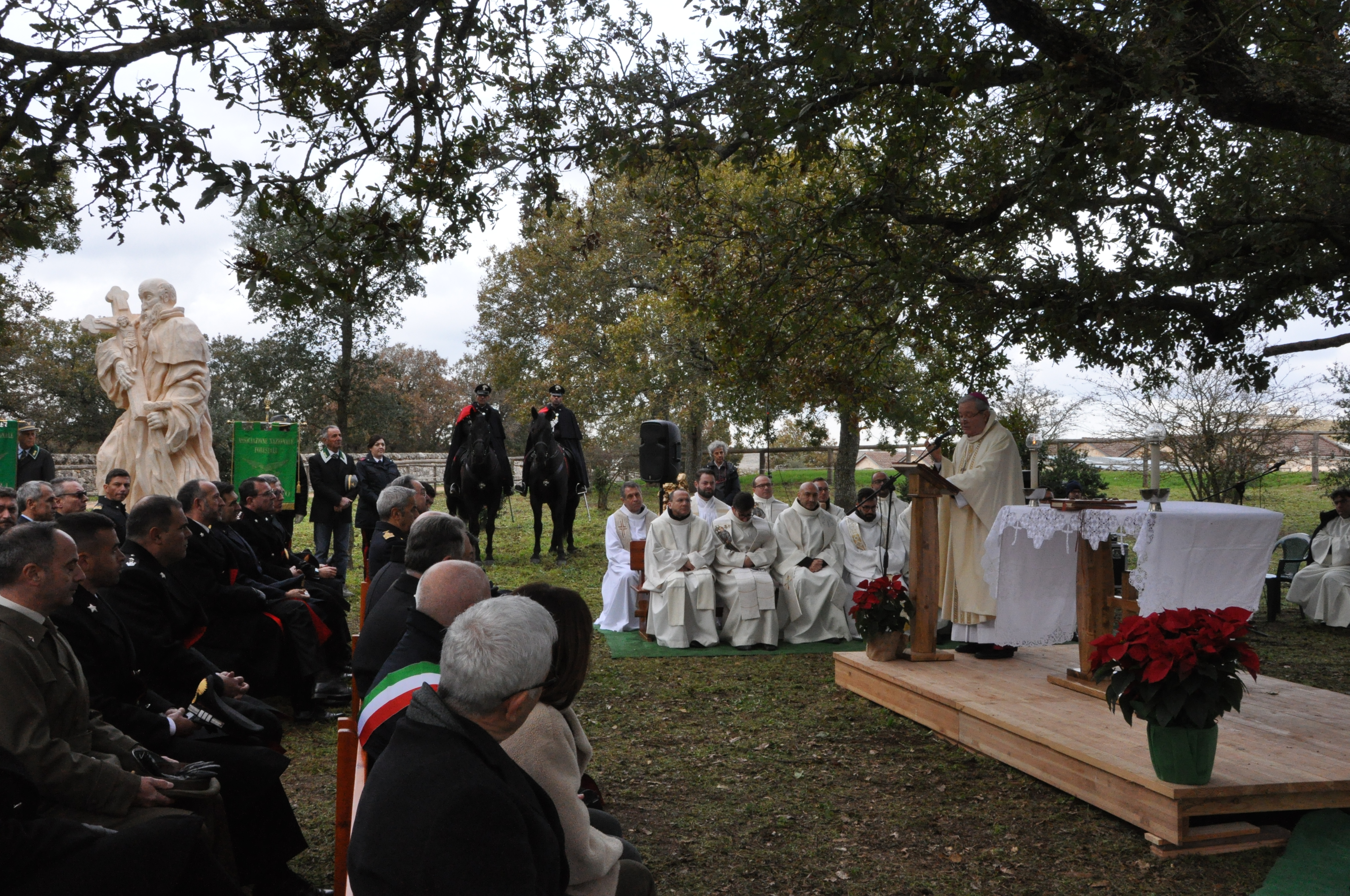 La suggestiva celebrazione eucaristica, svolta all’aperto sotto una monumentale quercia di fragno della Riserva, è culminata nella benedizione della statua realizzata con pietra locale da un artista, dipendente civile dell’Arma che concluderà il servizio attivo tra pochi giorni
