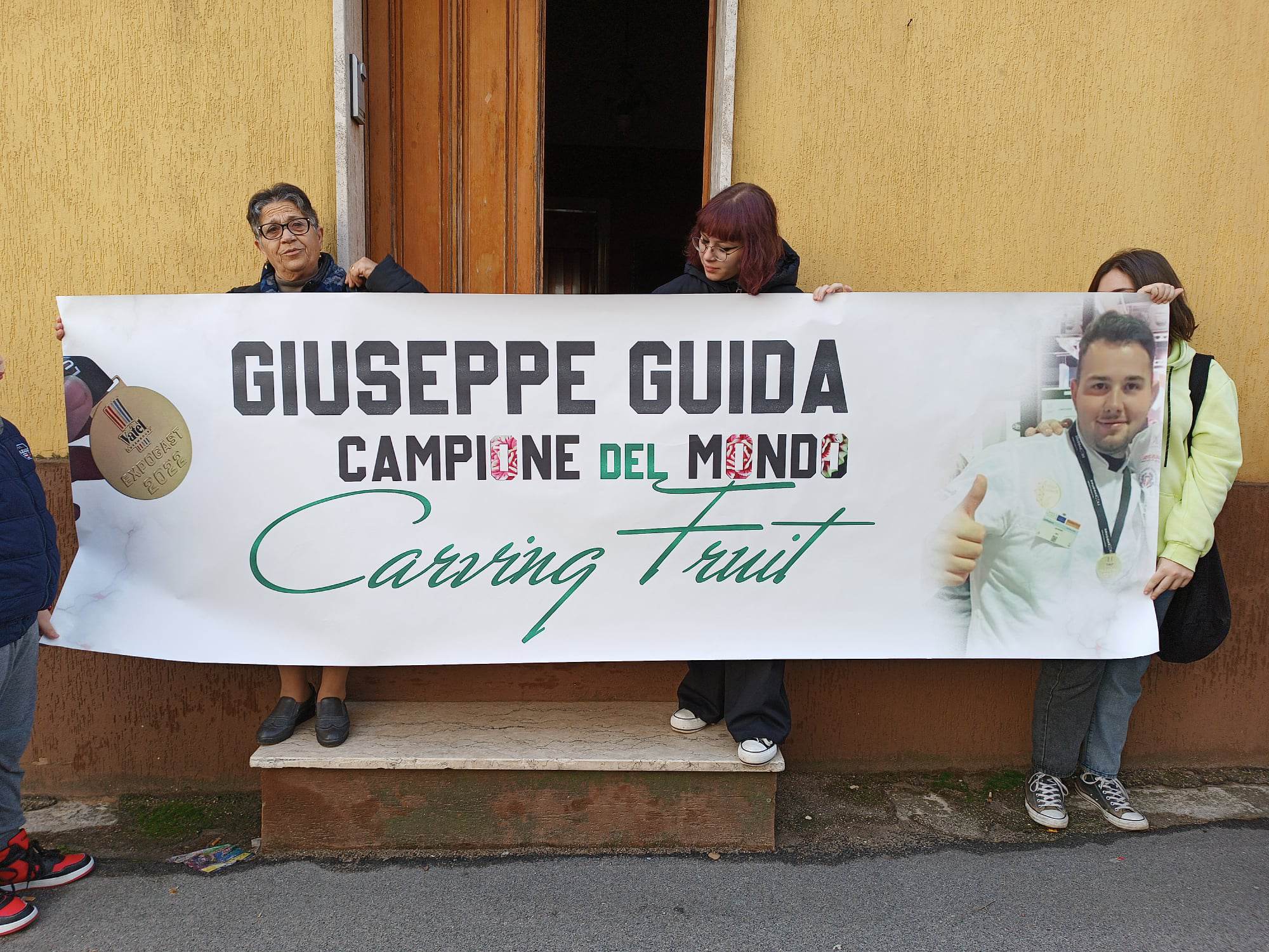 Giuseppe Guida, artista dell’intaglio, è rientrato stamani a casa, con un “bottino” prestigioso, ricco di metalli pregiati: due medaglie d’oro (corrispondenti ad altrettanti titoli iridati) e una di bronzo, conquistate al Culinary Word Cup 2022, che si è svolto nei giorni scorsi in Lussemburgo.