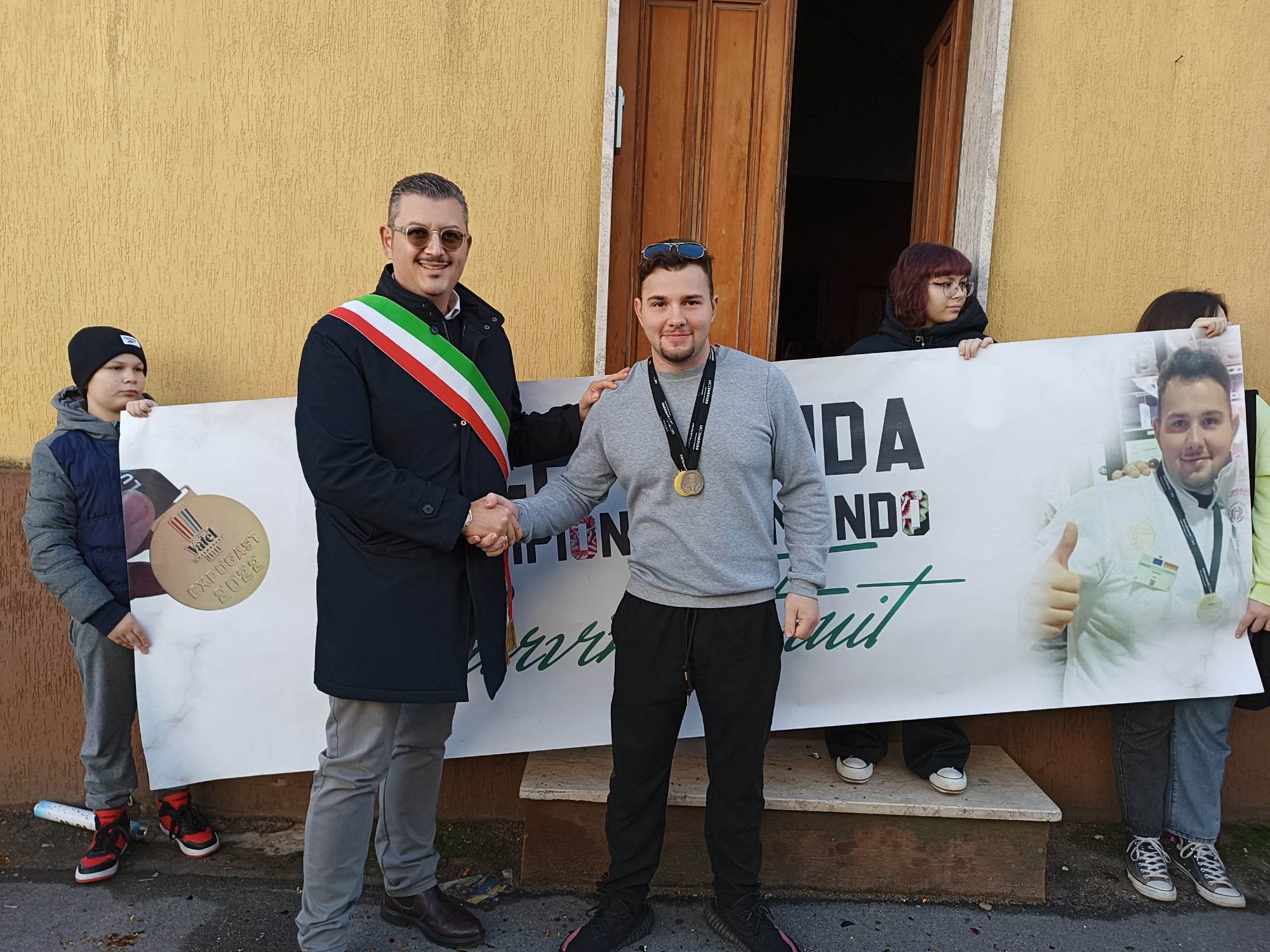 Ad attenderlo, dopo le due medaglie d’oro e quella di bronzo conquistate al Culinary Word Cup 2022 che si è svolto in Lussemburgo, anche il sindaco Alfredo Longo