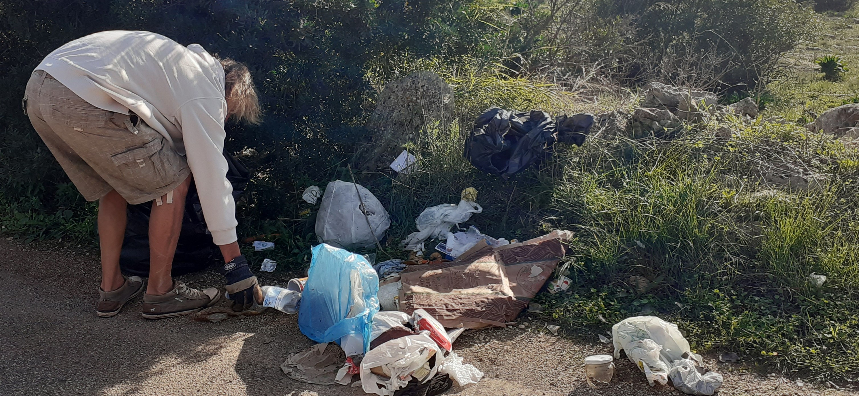 Oggi, nei pressi della zona Demani, abbiamo incontrato Peter, un uomo di origine tedesca che si è trasferito nelle nostre zone. Si era adoperato con guanti e sacchi e raccoglieva gli ammassi di immondizie abbandonate.