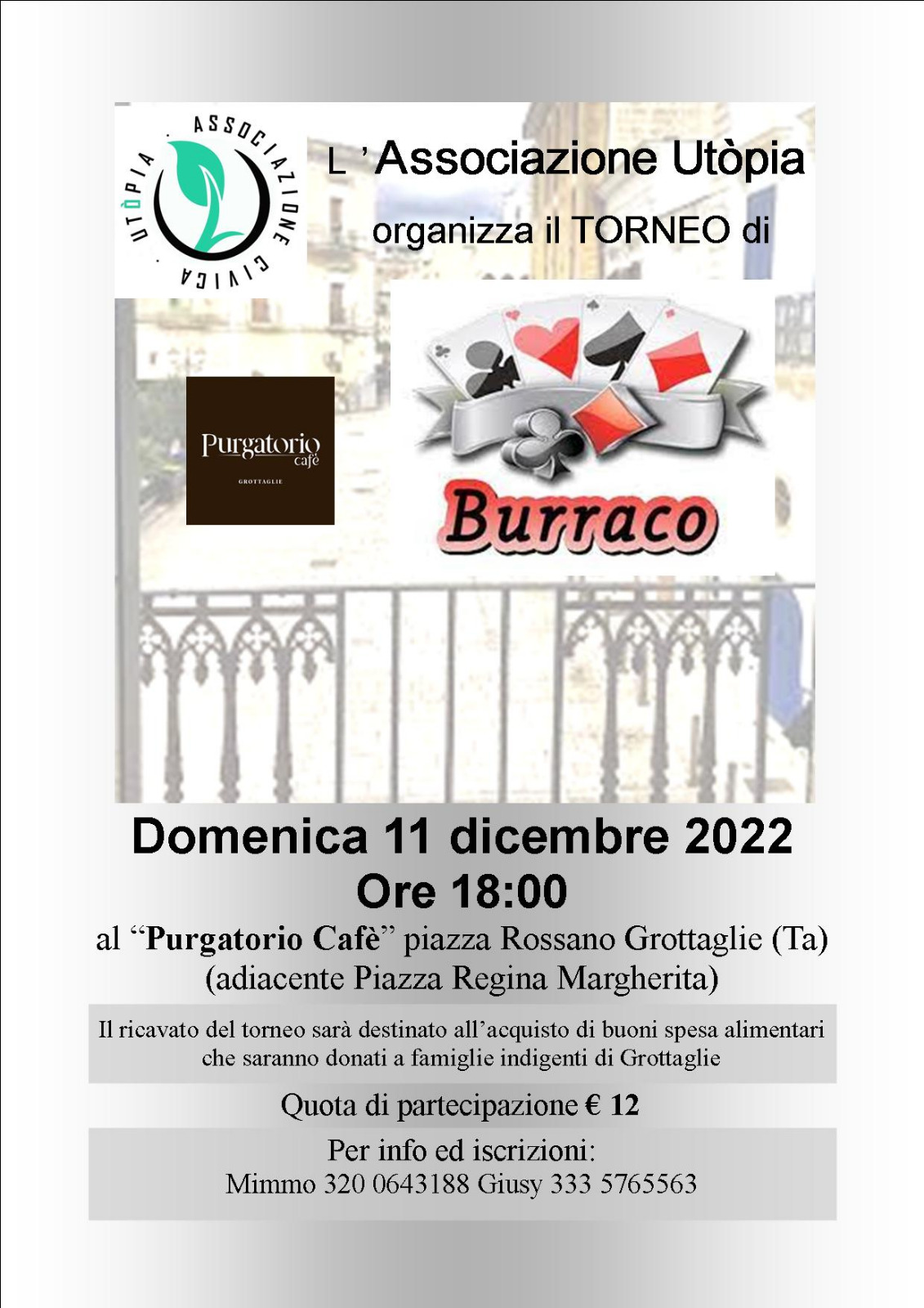 Domenica 11 dicembre, a partire dalle ore 18, nuovo appuntamento solidale con il torneo di burraco organizzato dall’associazione artistico culturale Utòpia.