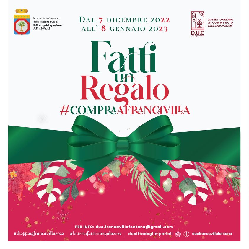 Torna “Fatti un regalo…compra a Francavilla”, il concorso a premi nato per incentivare gli acquisti nelle attività commerciali cittadine a cura del DUC Città degli Imperiali in collaborazione con l’Amministrazione comunale.