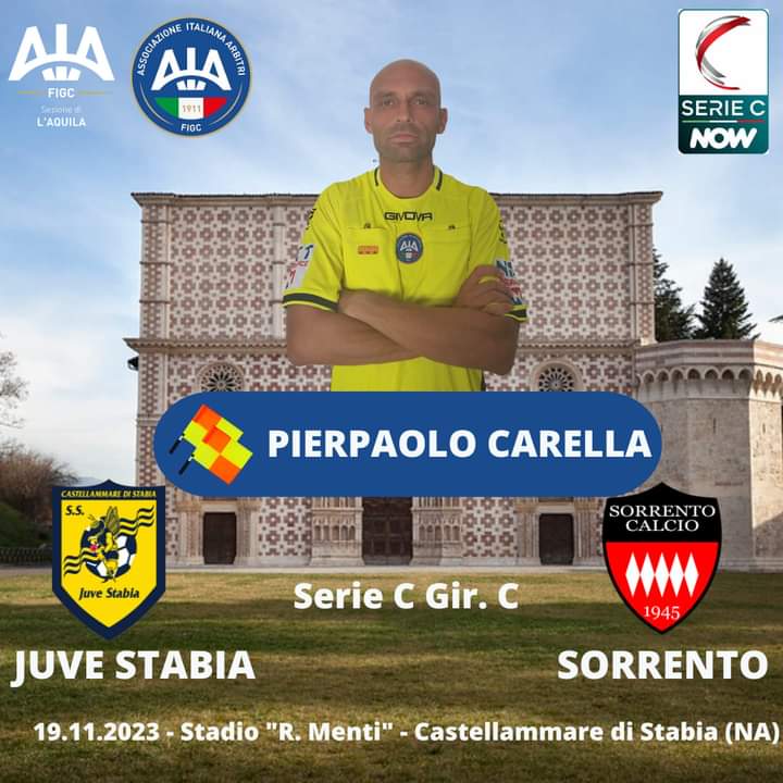 L’assistente di linea Pierpaolo Carella (Aia L’Aquila) designato per la partita Juve Stabia-Messina di serie C.