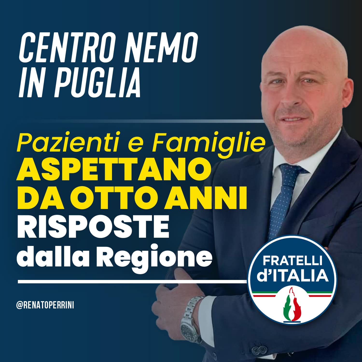 Riceviamo, e pubblichiamo, un comunicato del consigliere regionale di Fratelli d’Italia Renato Perrini.
