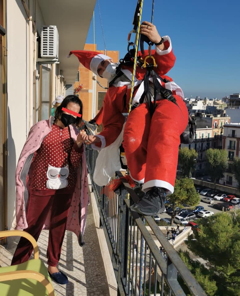 Oggi pomeriggio è stato un momento speciale per i piccoli pazienti dell’ospedale “SS. Annunziata” di Taranto. Questo pomeriggio, alcuni abili e simpatici Babbi Natale hanno fatto una sorpresa ai bambini e alle bambine ricoverati nei reparti di Pediatria e Oncoematologia Pediatrica: si sono calati dal tetto dell’ospedale e, tra volteggi entusiasmanti, si sono affacciati alle finestre per salutare i bambini, all’interno del reparto, portando loro doni e sorrisi.