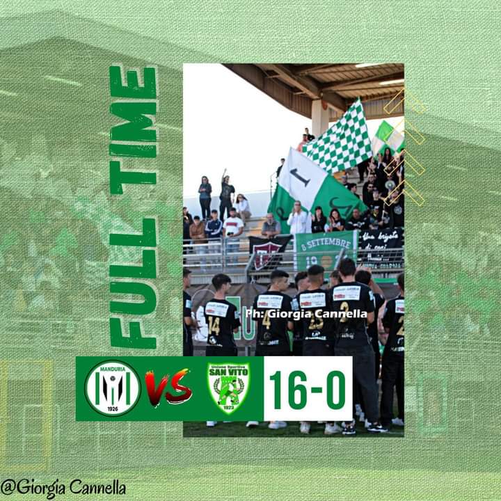 Il Manduria conclude dunque il girone d’andata a punteggio pieno: 7 partite, 7 vittorie, 31 reti all’attivo e 3 al passivo.
