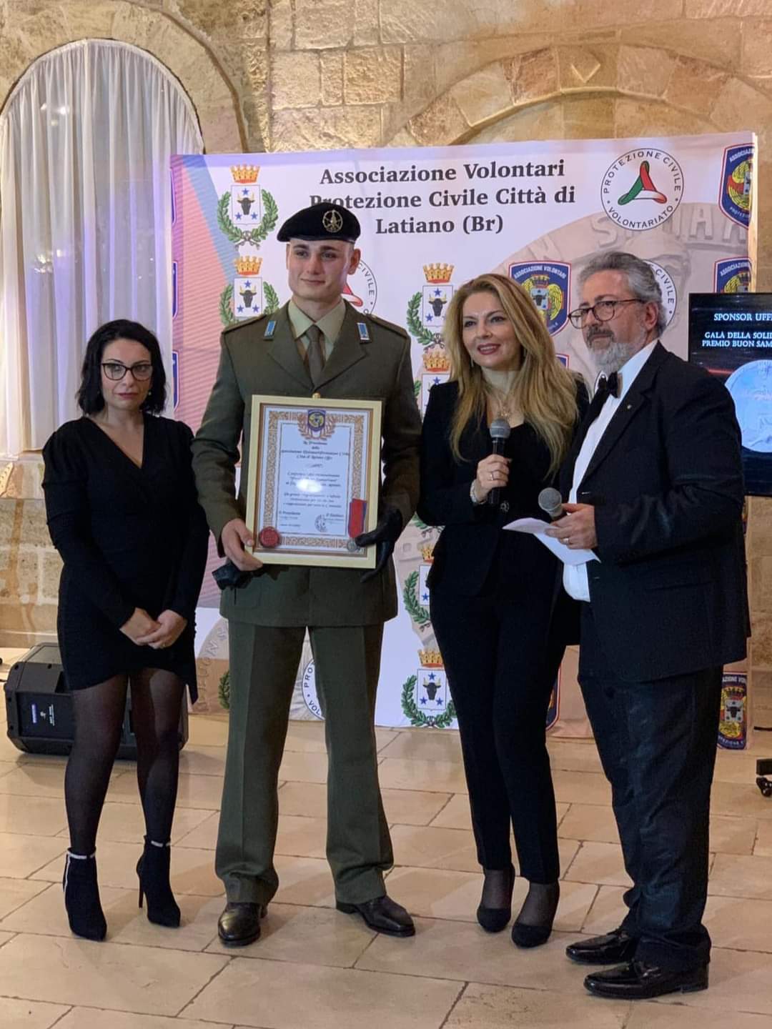 E’ con questo spirito che quest’anno hanno conferito al loro giovane sodale Arcangelo Antonio Cellie la medaglia d’argento Associazione Volontari Protezione Civile Latiano “Premio Buon Samaritano”, con la seguente motivazione: «Giovane volontario della nostra sezione, formatosi nello spirito della Protezione Civile presso la nostra sede, ed in forza anche al nucleo Piloti APR UAS A1 A2 A3, nel corso dell’anno 2022 si distingueva anche quando non impegnato in mansioni espletate nel nucleo territoriale di appartenenza, effettuando in città di Melendugno (LE) un soccorso domando le fiamme di una canna fumaria, scongiurando un incendio in civile abitazione, attendendo poi i VVFF, nonché, nel corso dell’estate, effettuava numerosi (circa 20) interventi di salvamento di persone a rischio annegamento presso i litorali brindisini bersagliati dalla furia delle onde e dalla forza della risacca. Figura di giovane coraggioso e volontario animato dallo spirito civico e cristiano “del Buon Samaritano” che la nostra associazione intende promuovere e premiare.