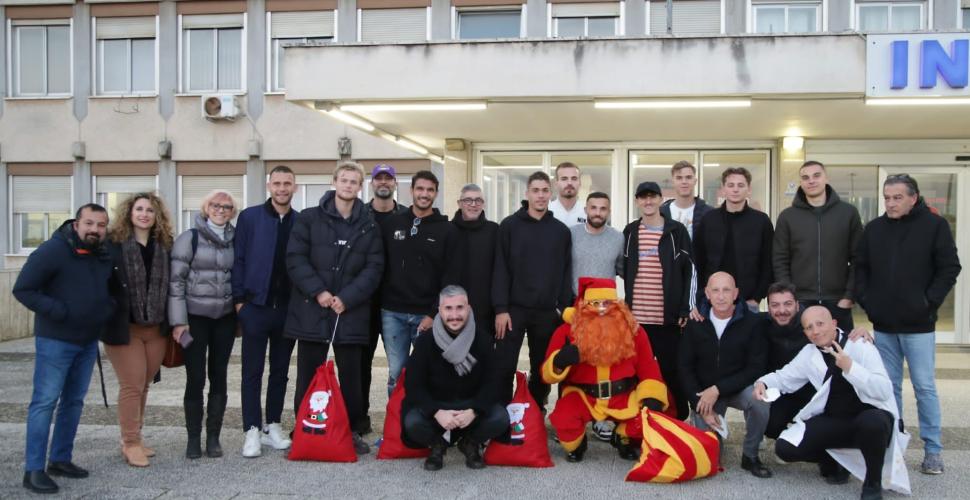 Doni dai calciatori del Lecce (figurine, magliette, zainetti e caramelle) ai bambini ricoverati nei reparti di Pediatria, Chirurgia Pediatrica e Oncologia dell’ospedale Vito Fazzi.