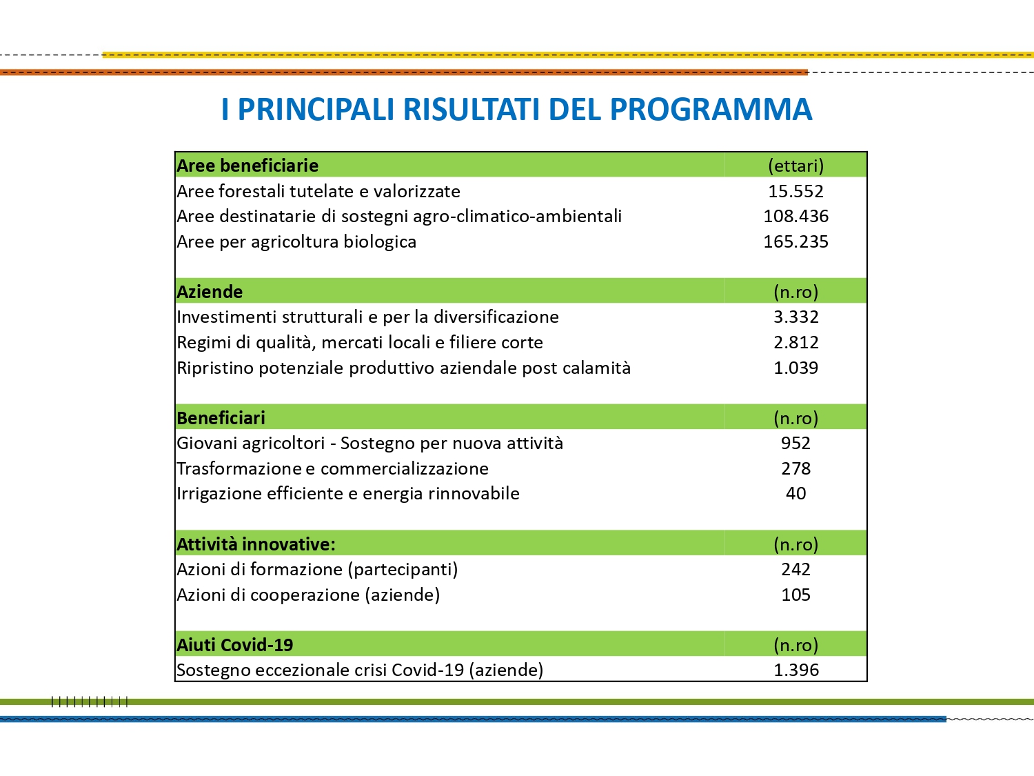 «Le novità per il Programma di Sviluppo Rurale sono importanti e vanno messe a disposizione della Puglia» ha ricordato l’assessore Pentassuglia. «Abbiamo raggiunto il target di spesa per il 2022, ben 260 milioni. E abbiamo superato il target annuale di 45 milioni di euro e quello complessivo di un valore pari a 25 milioni di euro, una somma identica a quella oggetto di trattativa con Bruxelles in quanto, seppur la regione aveva pagato, non era stata rendicontata per tempo. È una dinamica nuova, possibile grazie al lavoro del poco personale – sottolinea Pentassuglia - del Dipartimento Agricoltura e degli uffici periferici strategici per il presidio del territorio, e che ha avuto la collaborazione di tutto il partenariato e degli ordini professionali. Devo ringraziare anche le Procure, le Prefetture, l’Ispettorato del Lavoro e l’Inps per il lavoro sinergico e corretto che ci ha consentito di effettuare i pagamenti con i documenti in regola, quali certificati antimafia e Durc. Per il secondo anno consecutivo conseguiamo l’intera spesa - e anche di più - e ci proponiamo di iniziare il 2023 con un target molto alto pari a 240 milioni di euro insieme ad altri impegni legati all’inizio della programmazione per il Piano Strategico Nazionale (PSN)”.