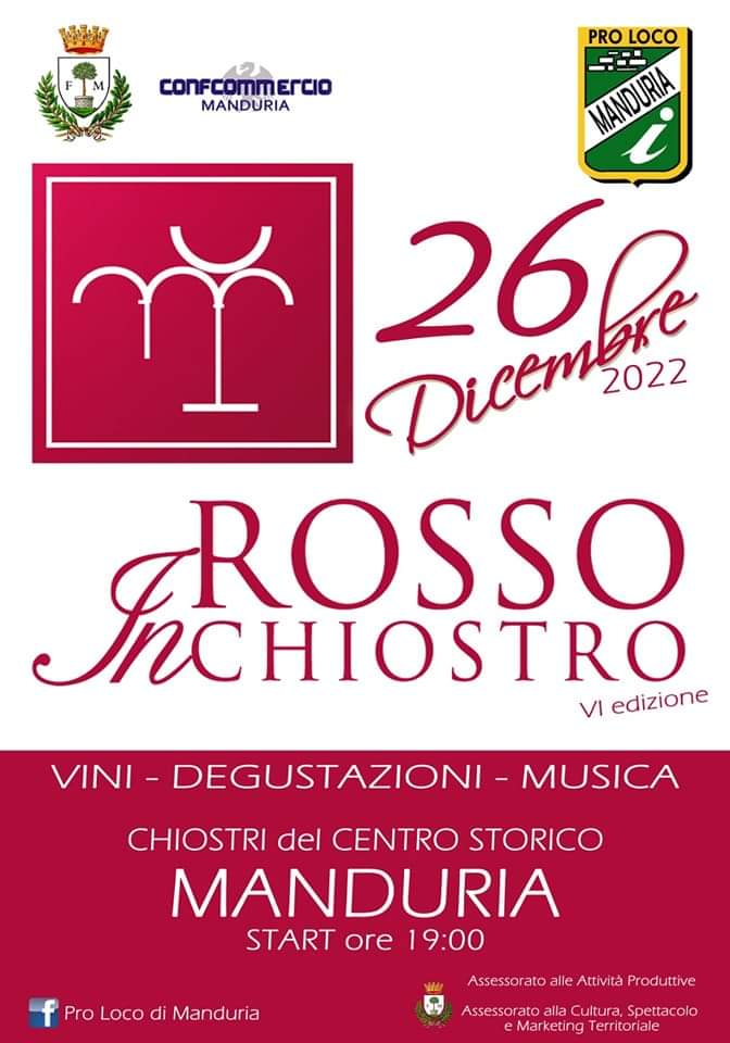 «A Manduria il rosso è sempre di casa, perché rosso è il colore di sua maestà il Primitivo, eccellenza che ha reso celebre il nome della nostra città nel mondo tra gli amanti del vino. Ed è proprio il connubio tra il prodotto principe del settore vitivinicolo locale ed il patrimonio storico materiale ed immateriale lasciatoci in eredità che la VI edizione di “Rosso Inchiostro” intende celebrare» si legge in un comunicato della Pro Loco di Manduria.