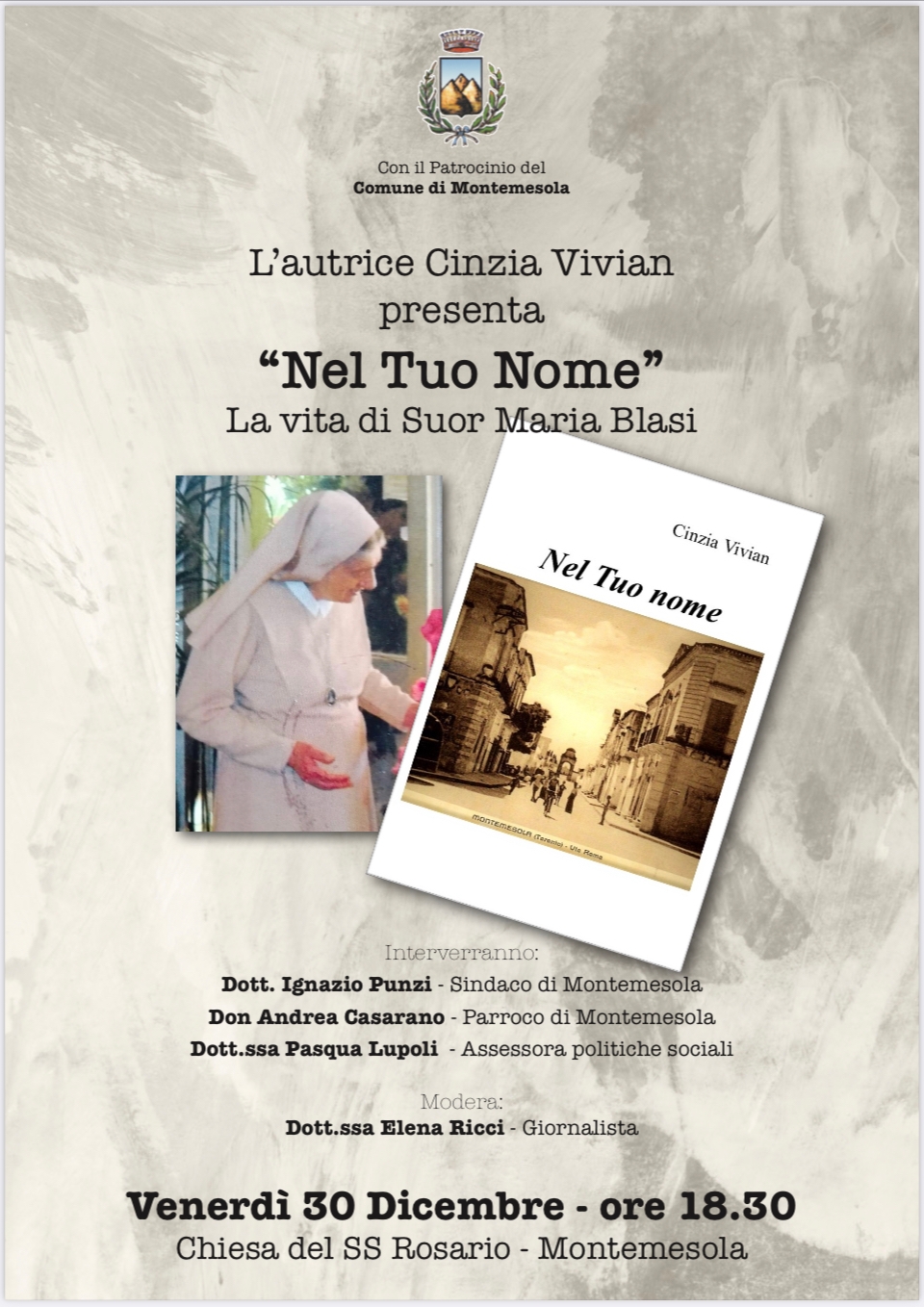 “Nel tuo nome”, questo il titolo dell'opera che racconta la vita della missionaria in Brasile, sarà presentato a Montemesola il 30 dicembre, alle ore 18.30, presso la chiesa del Santissimo Rosario.