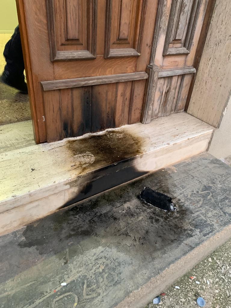 «Il Comando della Polizia Locale è stato oggetto di un attentato a mezzo di bottiglietta incendiaria. Sebbene i danni al marmo ed al portone di ingresso siano lievi, resta il fatto che siano state oltraggiate le istituzioni».