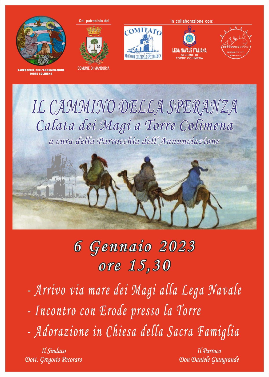 L’appuntamento per questo evento promosso dalla parrocchia dell’Annunciazione di Torre Colimena è per venerdì 6 gennaio, alle 15,30: i Magi arriveranno a bordo di una imbarcazione allo scalo della Lega Navale.