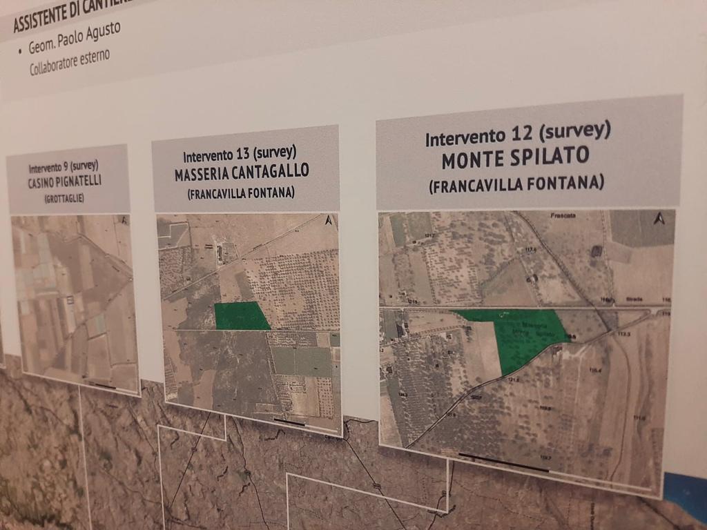Le ricerche, finanziate con il Piano stralcio “Cultura e Turismo” FSC 2014-2020, hanno permesso di evidenziare tracce e resti archeologici sul territorio di Francavilla Fontana, in particolare lungo la strada provinciale 51, in località Monte Spilato. Qui le indagini hanno consentito di rinvenire numerosi frammenti di varie epoche storiche che dimostrano l’origine antica della strada che è stata oggetto di una lunga serie di rifacimenti. Altre tracce sono state trovate in località Masseria Cantagallo.