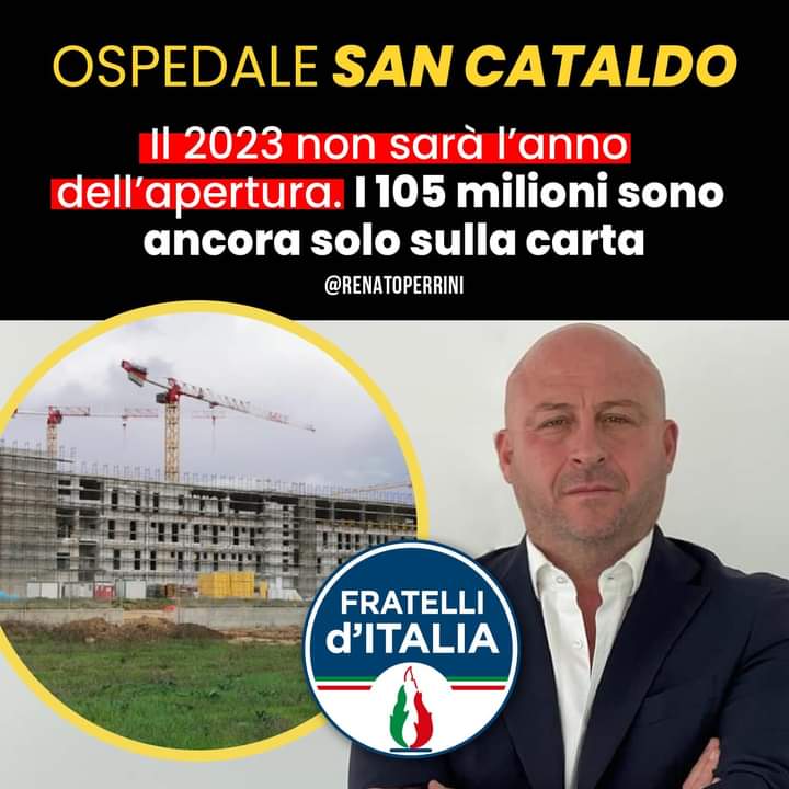 Riceviamo, e pubblichiamo, un intervento del consigliere regionale Renato Perrini (FdI) sui ritardi con i quali procedono i lavori di realizzazione dell’ospedale San Cataldo di Taranto.