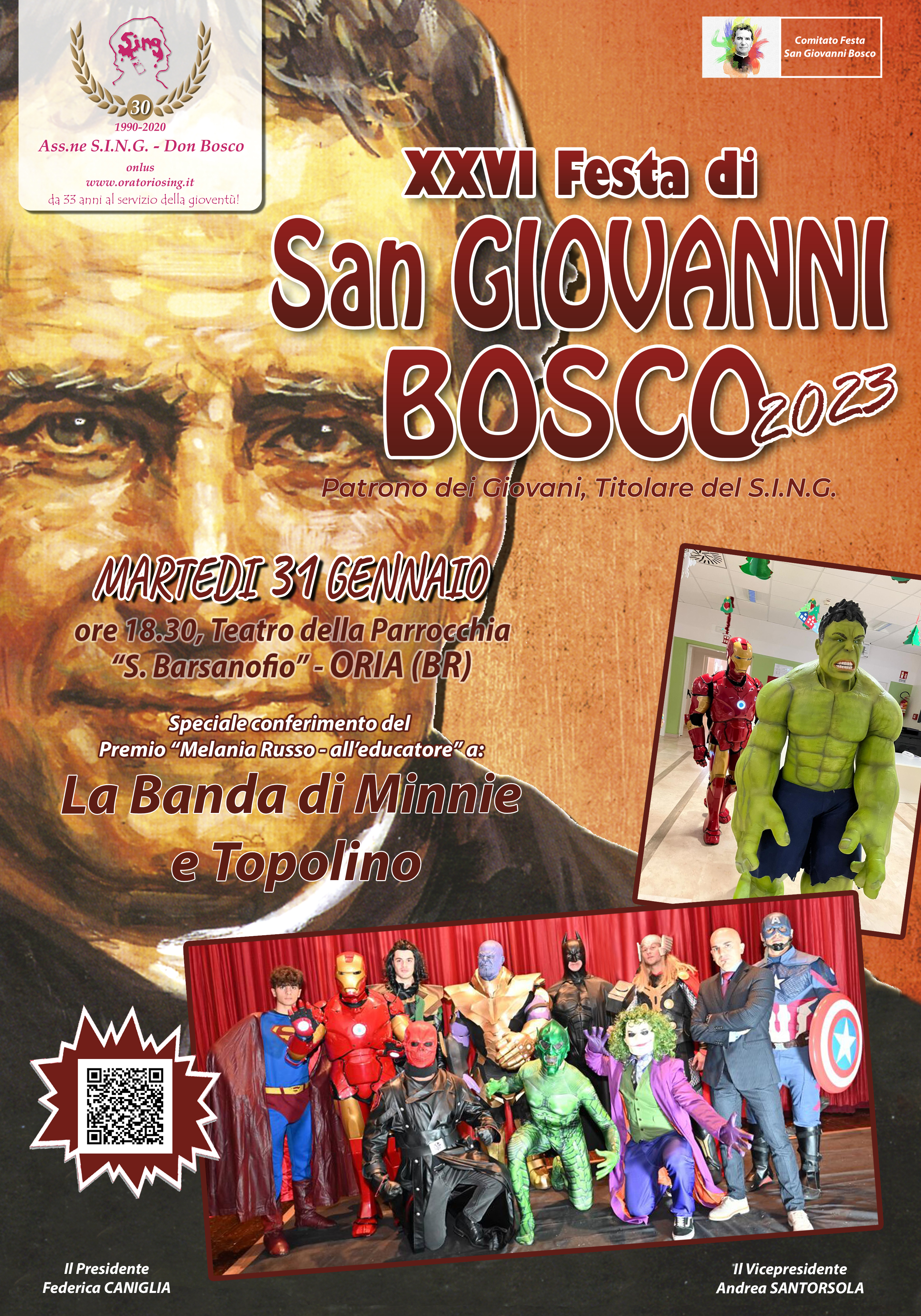 Continuano ad essere svelati i nomi degli ospiti della XXVI edizione della festa di San Giovanni Bosco in Oria. Dopo il noto comico Max Cavallari, dei “Fichi d’India”, e Mattia Villardita, noto per dare anima a Spiderman nei reparti pediatrici di tutta la nazione, è la volta della “Banda di Minnie e Topolino”. L’associazione di Fasano è balzata agli onori della cronaca per aver realizzato, nel luglio scorso, un grandissimo desiderio di Ivan, piccolo paziente oncologico, mettendo in scena una grande parata stile Disney.