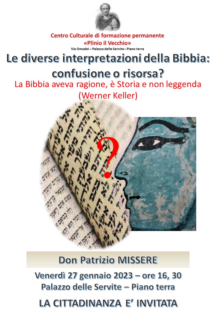 Venerdì 27 gennaio: “Le diverse interpretazioni della Bibbia: confusione o risorsa?”. Relatore don Patrizio Missere.