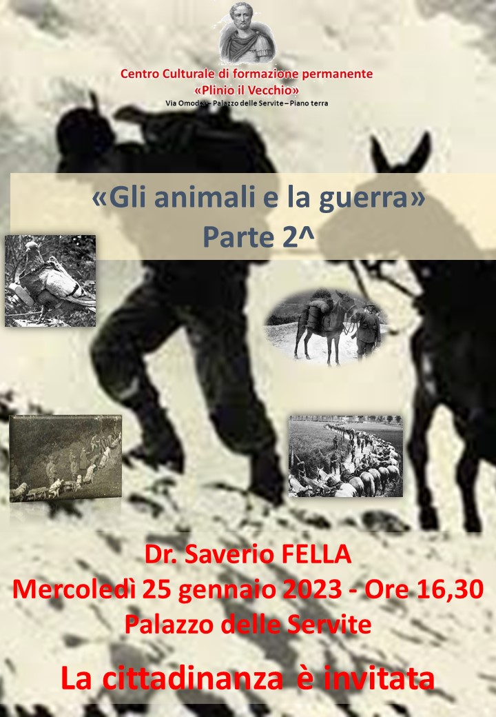 Mercoledì 25 gennaio: “Gli animali e la guerra – 2ª parte”. Relatore dr. Saverio FELLA;