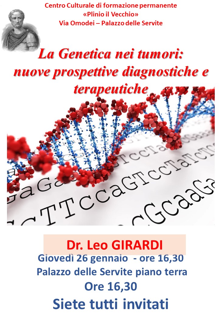 Giovedì 26 gennaio: “La Genetica nei tumori: nuove prospettive diagnostiche e terapeutiche”. Relatore dr. Leo GIRARDI;