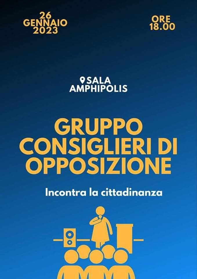 Oggi alle ore 18, presso la sala comunale “Amphipolis”, i consiglieri comunali di opposizione Mariangela Caforio, Giulio Rossetti, Giuseppe Brigante, Fabio Pichierri e Claudio Leone incontrano la cittadinanza savese.