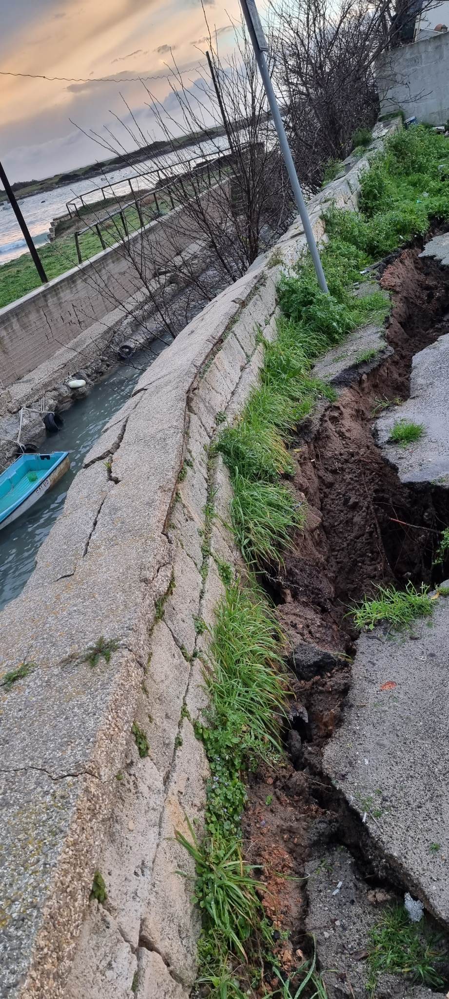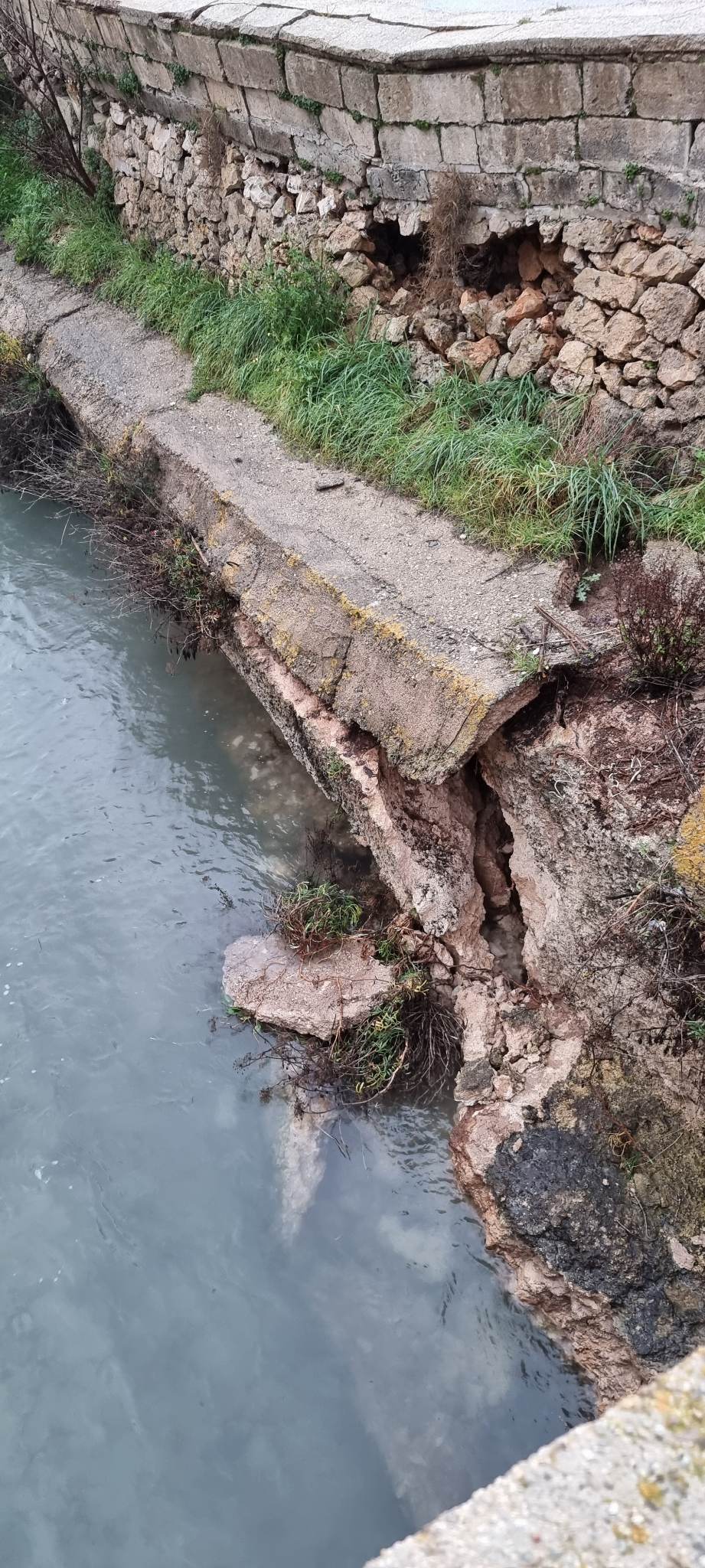 crollo del parapetto di un tratto lungo circa 30 metri e largo un paio di metri. E’ molto probabile, dunque, che con le prossime piogge l’argine potrebbe definitivamente crollare.