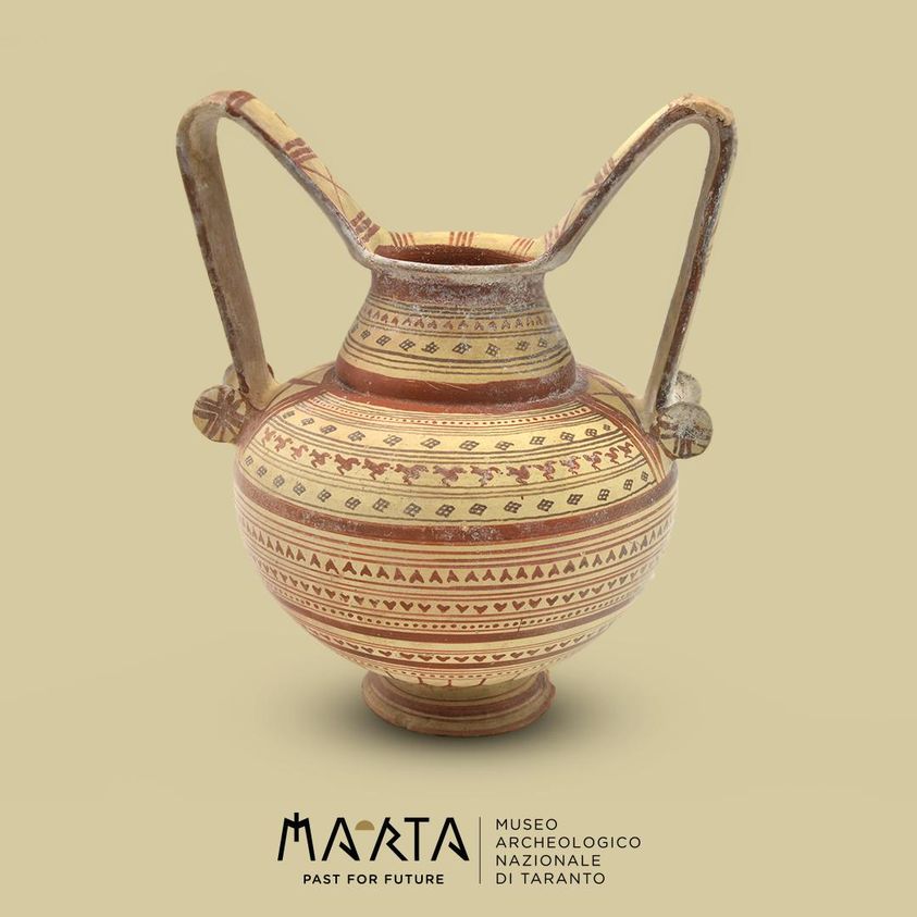 La trozzella qui in foto, rinvenuta a Manduria in una tomba presso la masseria Piacentini, nel 1898, è esposta nella mostra “Tesoros del Museo Arqueológico Nacional de Taranto. Griegos y otras civilizaciones antiguas del Sur de Italia”, visitabile fino al 5 marzo 2023!