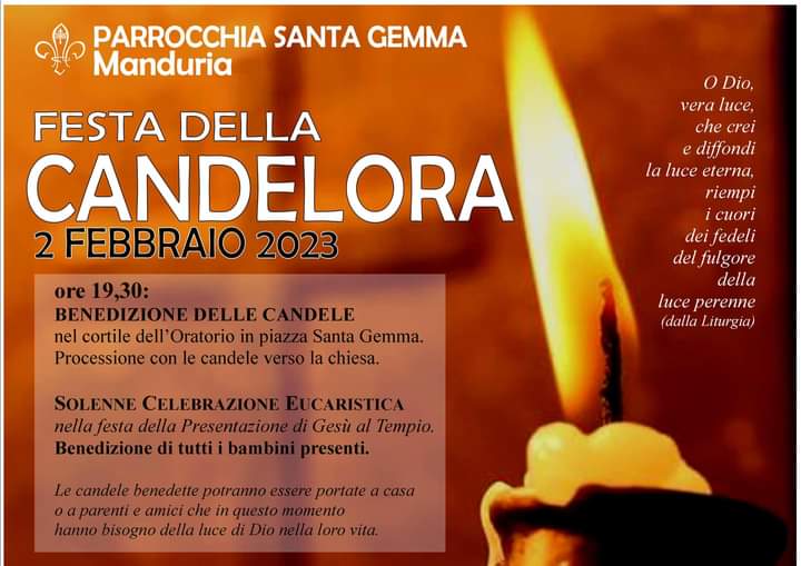 Anche nella parrocchia manduriana intitolata a Santa Gemma Galgani domani si festeggia la Candelora. Ecco il programma.