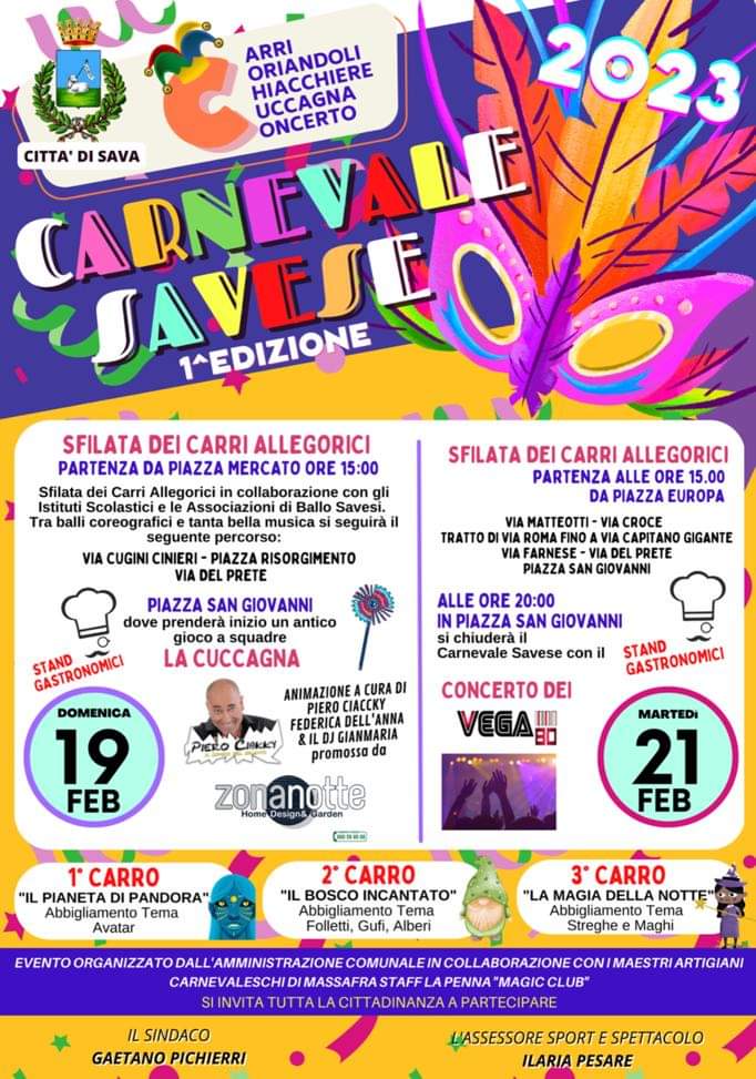Definito il programma del Carnevale Savese 2023: sfilate e animazione serale nel “menu” proposto dall’Amministrazione comunale.