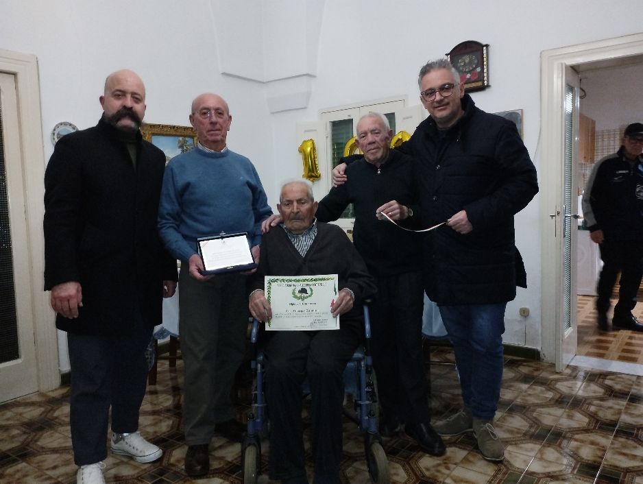 Accolti dalla famiglia con la massima disponibilità, il presidente Luigi Franzoso e il delegato Giancarlo Parisi hanno consegnato al Tarantini una targa ricordo, dono di tutti i tesserati, e una pergamena di benemerenza inviatagli direttamente da Roma dal presidente nazionale Antonio Landi.