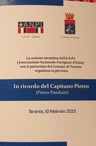 Domani, venerdì 10 febbraio, l’ANPI provinciale di Taranto ha organizzato, con il patrocinio del Comune di Taranto, una cerimonia presso il cippo dedicato a Pietro Pandiani e la presentazione del libro di Mario Guadagnolo dedicato al partigiano tarantino.