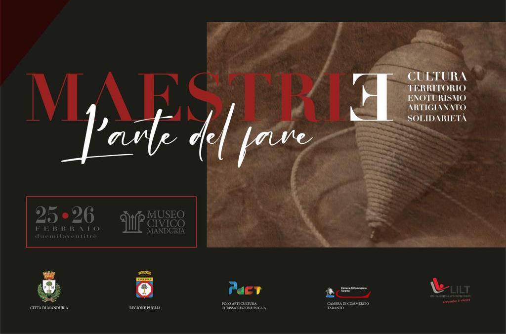“Maestrie – l’arte del fare” sarà ospitato dal prestigioso museo civico di Manduria (ex monastero delle Servite), nel cuore del centro storico, sabato 25 e domenica 26 febbraio, quando si intrecceranno storie alla scoperta dell’alto artigianato ionico attraverso la cultura enoica, enoturistica, ceramico artistica e sartoriale. Un viaggio all’insegna della creatività, dell’immaginazione e della tradizione in cui l’estro trova perfetta espressione.