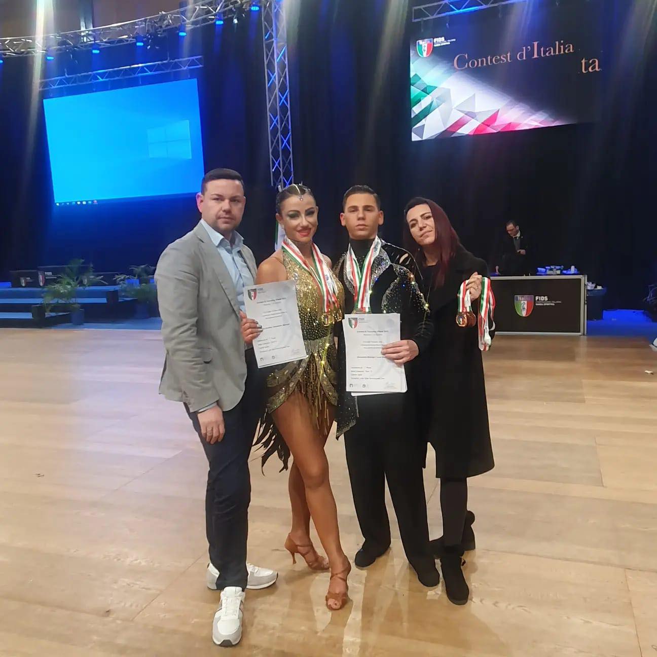 Primi classificati e titolo di campioni assoluti nel Latin style sincronizzato tecnica samba over 17