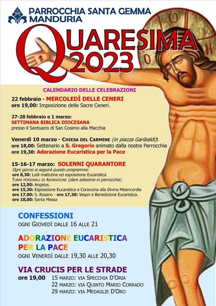 Quaresima 2023, il programma delle celebrazioni della parrocchia di Santa Gemma.