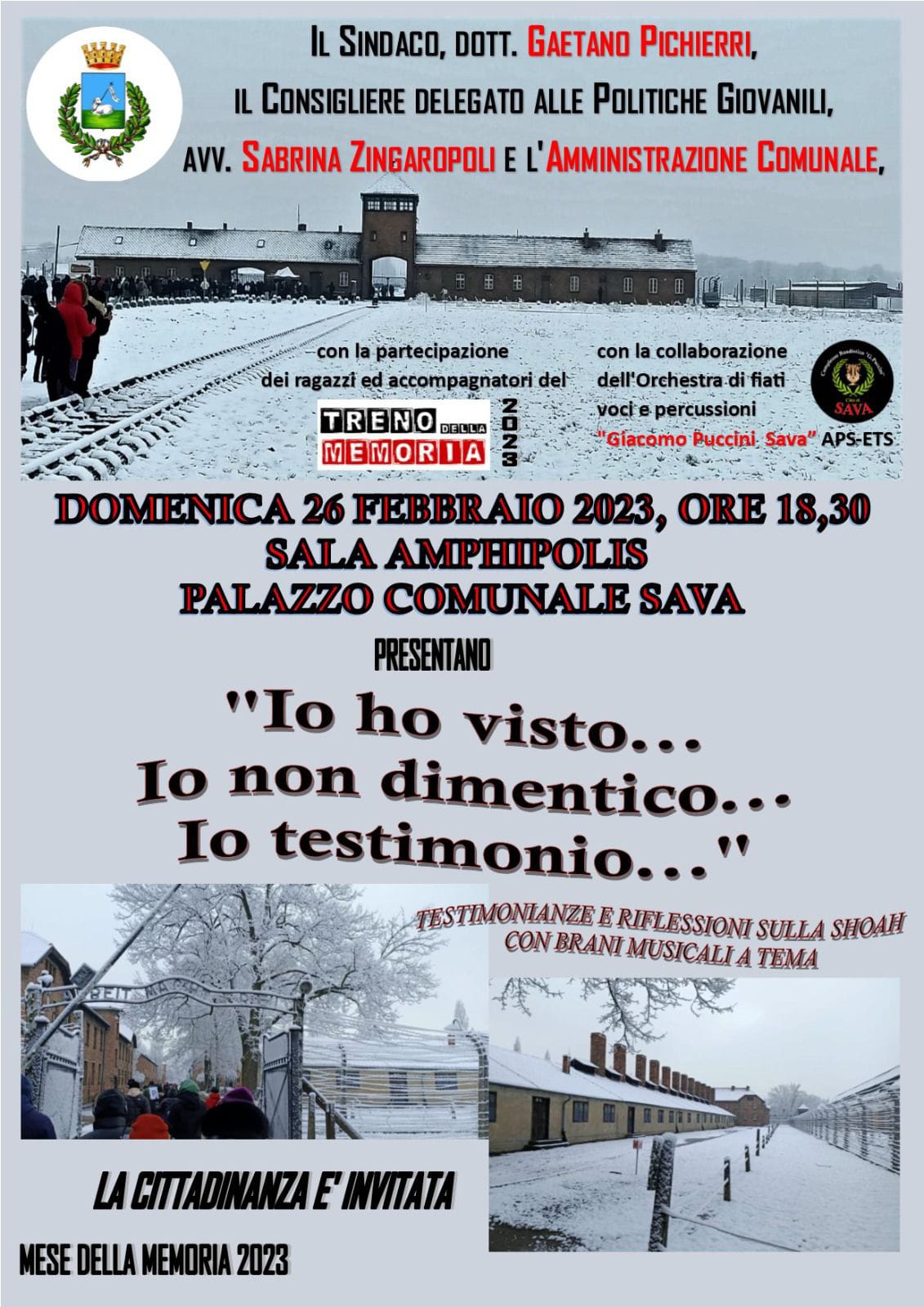 Domenica, alle ore 18.30, nella sala Amphipolis del palazzo municipale di Sava, si svolgerà un incontro sul ricordo della Shoah.