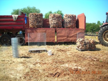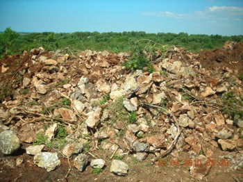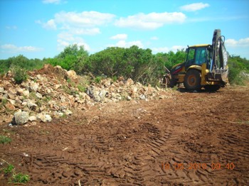 (stessa cosa avviene con gli alberi di ulivo sradicati).Lunedì scorso, in contrada “Le Fabbriche,” territorio del Comune di Maruggio, all’interno di una distesa di diversi ettari di macchia mediterranea, di nascosto, fotografavo tre operai, intenti a scegliere le pietre più belle, che poi con cura depositavano in dei capienti cesti di fil di ferro. Una pala meccanica aveva preventivamente ripulito dalla macchia mediterranea, l’ampia zona interessata alla ricerca, e successivamente,