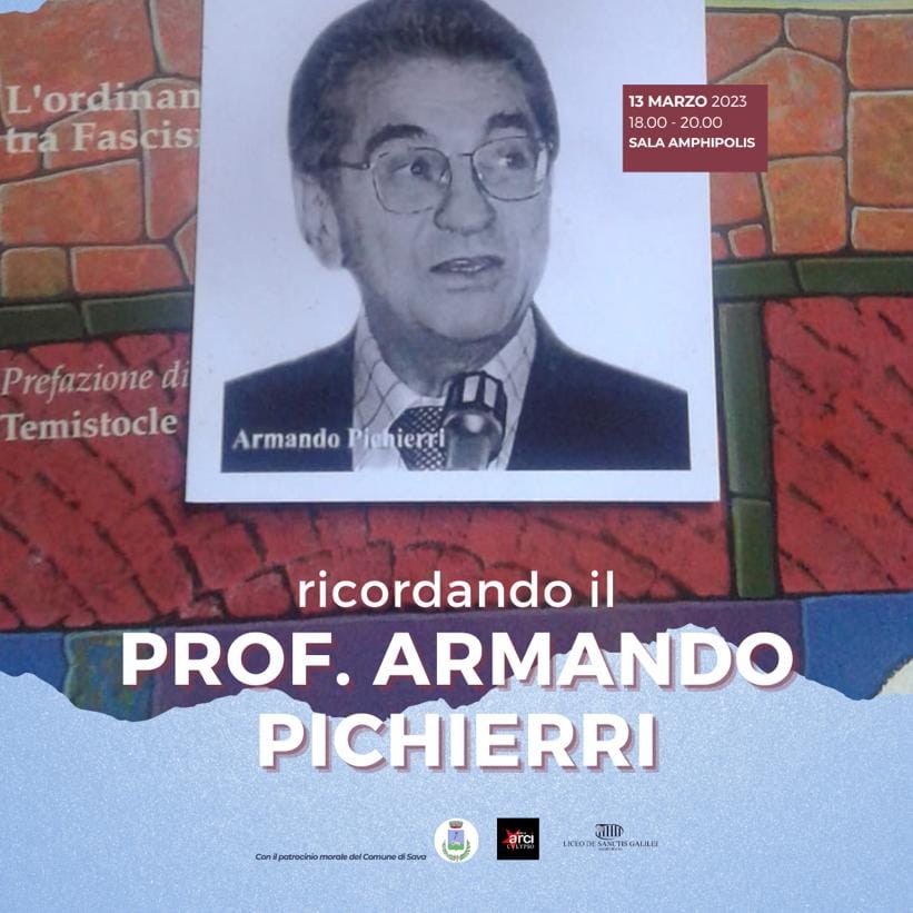 Lunedì 13 marzo, a partire dalle 18, sarà ricordato, nella sala “Amphipolis” del Comune di Sava, la figura del compianto professor Armando Pichierri, scomparso esattamente sette anni fa.