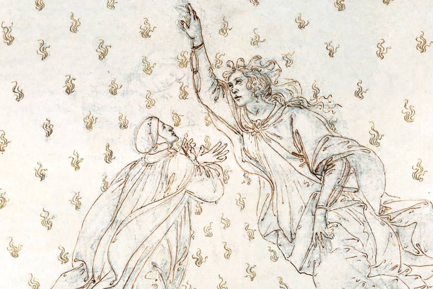 Nell’illustrare la Commedia, Botticelli lasciò alcune parti in sospeso, forse perché la fantasia lo portava verso altri episodi che più lo ispiravano o per la difficoltà oggettiva di esprimere col disegno la poesia di Dante. Certo dovette avvertirne tutta la difficoltà, se sentì il bisogno, nell’illustrazione del Canto XXVIII del Paradiso, di scrivere il suo nome sul cartello portato da un angelo: “Sandro di sua mano”.