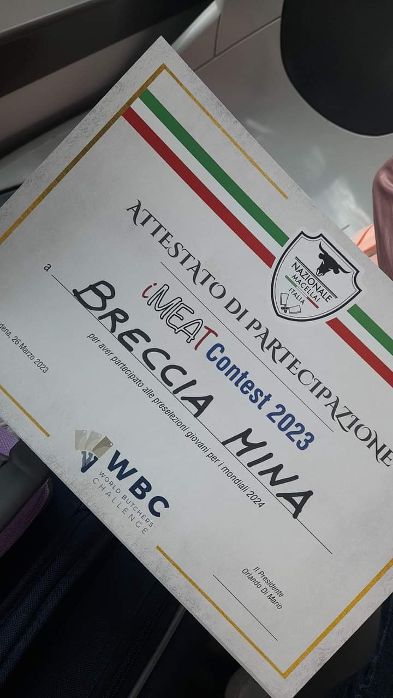 Mina Breccia ha partecipato, domenica scorsa, alla semifinale nazionale del contest riservato ai giovani macellai, che si è svolto a Modena e che era finalizzato alla selezione dei sei giovani macellai che compongono il Team Giovani della Nazionale Italiana Macellai.