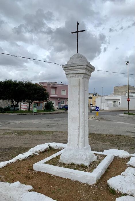 mani perché il vento non le spegnesse, era già oltre il sacrato per guidare i fedeli verso l’Osanna, alla periferia del paese, ove si sostava intorno alla colonna di pietra con il simbolo, senza il Cristo, issato in cima. Lì si andava in processione la domenica delle palme (…) accanto a quella colonna che era ricordo del luogo ove anche in quel paese si credeva che si fosse incontrato, come a Gerusalemme, Cristo con il popolo.