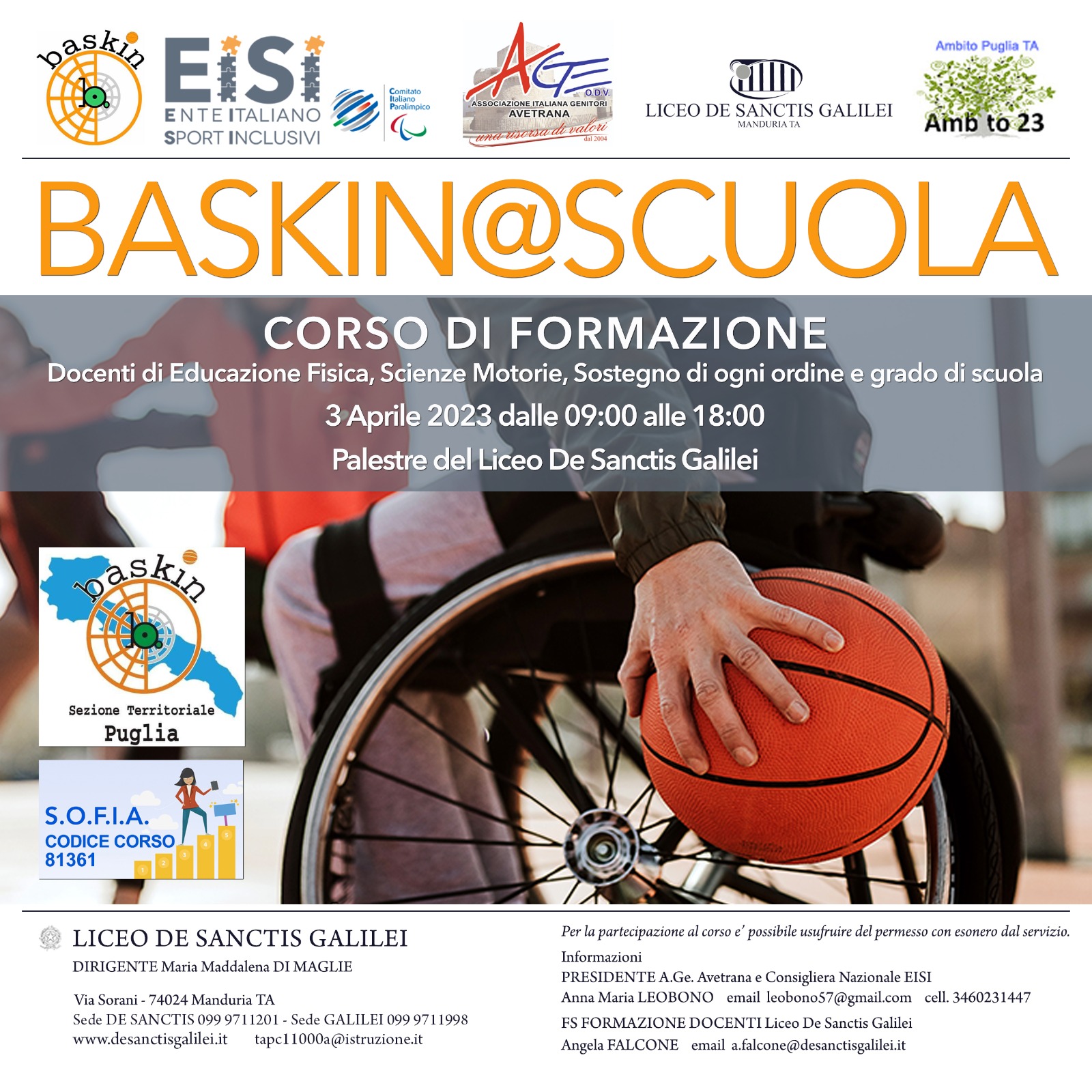 «Questo nuovo sport, nato a Cremona, è stato pensato per permettere a ragazzi e ragazze normodotati e giovani disabili di giocare nella stessa squadra» è riportato in una nota a firma di Anna Maria Leobono, presidente dell’Associazione Genitori di Avetrana e consigliera nazionale di EISI. «In effetti, il baskin permette la partecipazione attiva di giocatori con qualsiasi tipo di disabilità (fisica e/o mentale) che consenta il tiro in un canestro. Questa proposta, effettuata nella scuola, diventa un laboratorio per una società inclusiva».