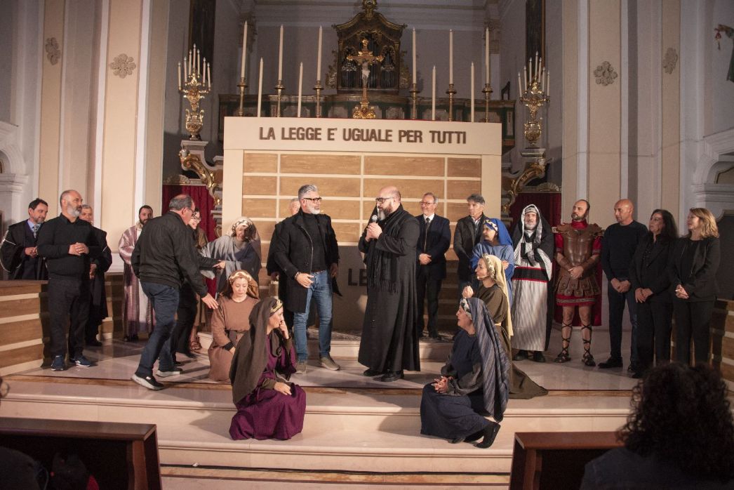 Grande successo di pubblico ha riscosso nella serata della domenica delle Palme la piece teatrale sacra “Processo al Nazareno”, rappresentata in chiesa Madre ad Avetrana, per la regia di Gino Cesaria.
