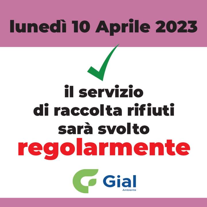 Lunedì, giorno di Pasquetta, il servizio di raccolta dei rifiuti sarà svolto regolarmente.