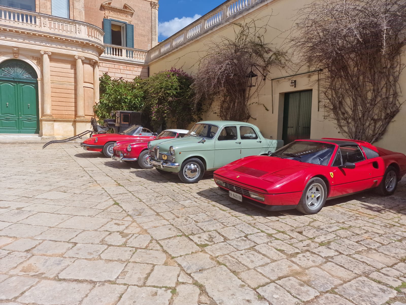 Nella corte di villa Buontempo si fanno largo, solo per citarne alcune, Ferrari, Porsche, Alfa Romeo, Mercedes, Lancia, Maserati e carrozze dal valore inestimabile, con a bordo appassionati e collezionisti che hanno attraversato la Puglia da un capo all’altro, fino a radunarsi in una cornice unica, una dimora gentilizia degli inizi del ‘700.