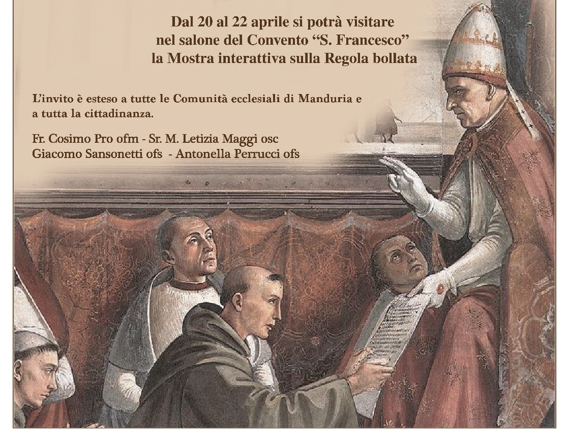 Dal 20 al 22 aprile si potrà visitare nel salone del convento di “S. Francesco” la Mostra interattiva sulla Regola bollata.