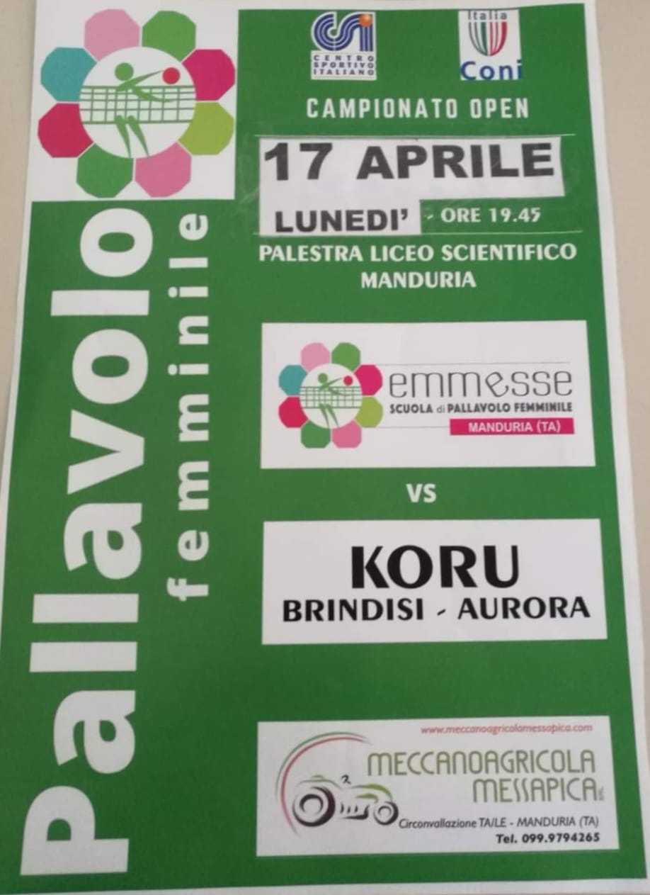 Questa sera ultima gara casalinga stagionale per le atlete dell’Emmesse – Vis Nova Messapica Manduria, impegnati nel campionato CSI e CONI.