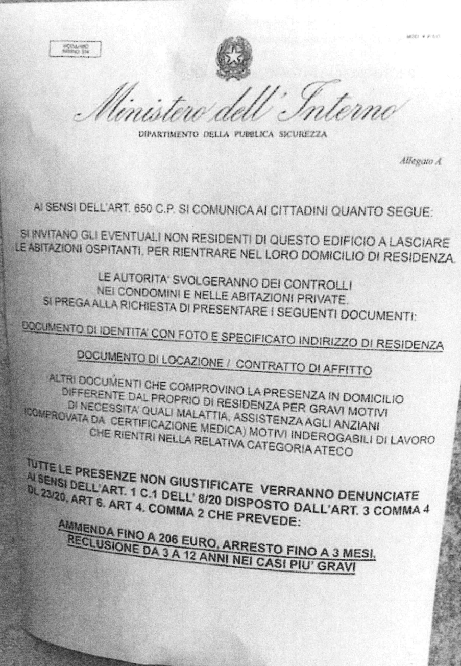 Riporta anche l’obbligo di presentare, a richiesta, la documentazione di affitto della casa e i propri documenti con foto.
