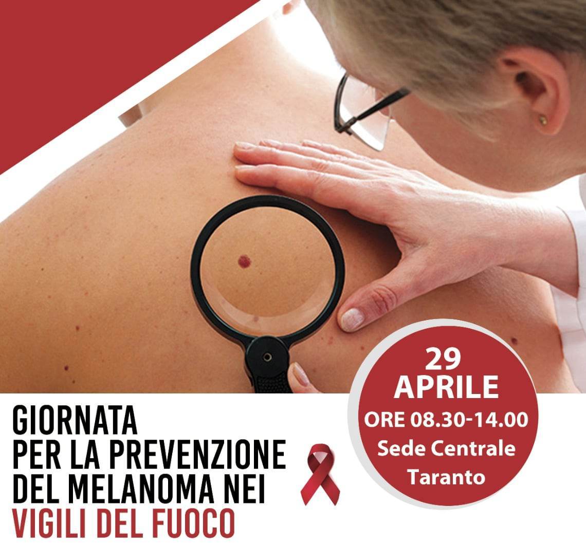 Si svolgerà a Taranto, nella mattinata di sabato 29 aprile (dalle8,30 alle 14), la Giornata per la Prevenzione del Melanoma nei vigili del fuoco. L’iniziativa, voluta dai Vigili del Fuoco di Taranto e organizzata dal dott. Giuseppe Turco, prevede la mappatura gratuita per tutti i vigili del fuoco della provincia di Taranto.