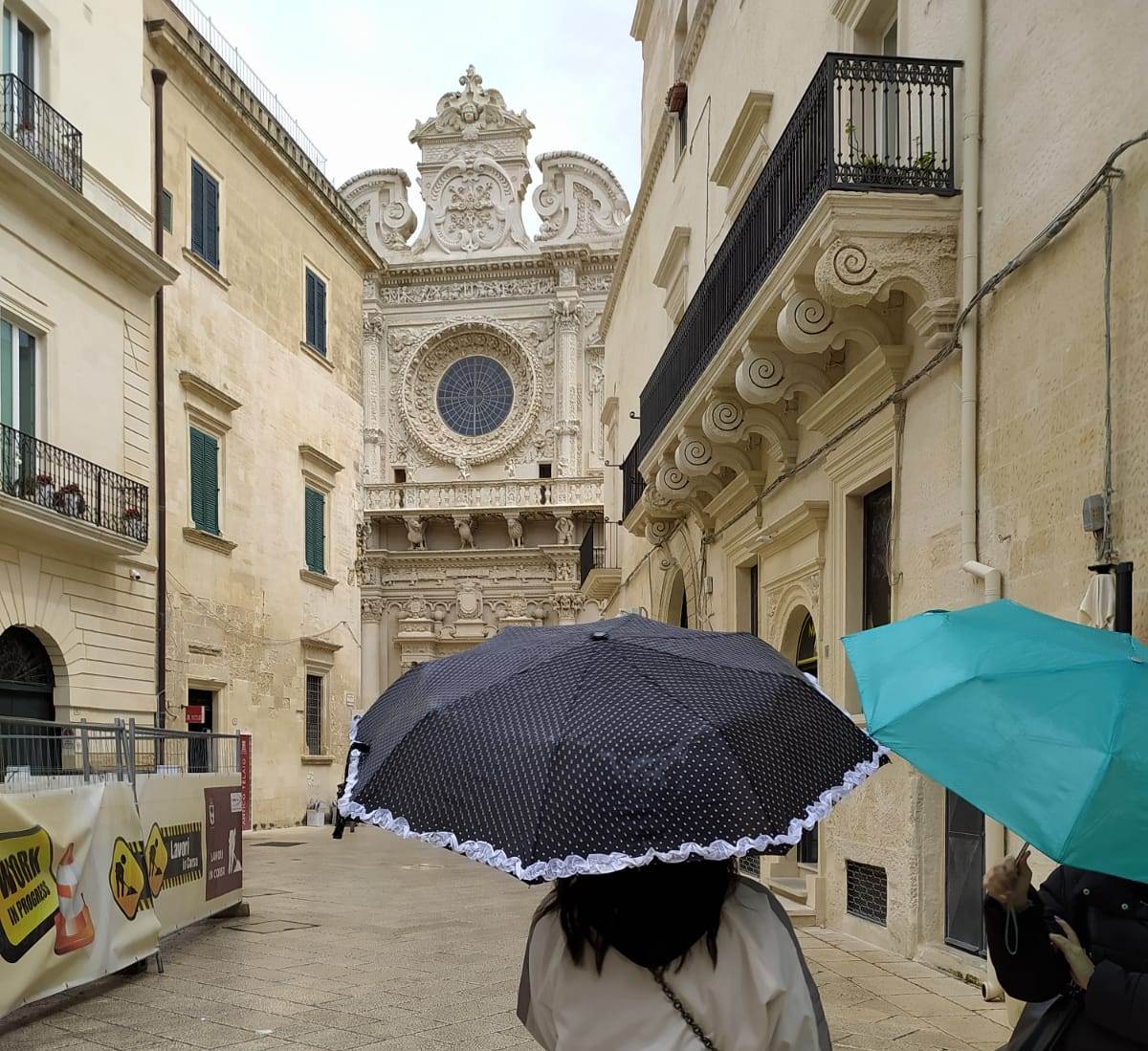 Lo splendido anfiteatro romano conserva il suo fascino, legato alla grandiosa parentesi romana, anche sotto la pioggia battente. Un breve “zigzagare” tra le stradine lastricate del centro, ha svelato il sipario della splendida facciata della chiesa di Santa Croce, dove il barocco ha celato parte del quartiere ebraico.