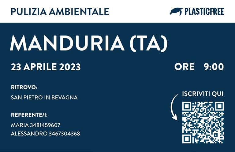Chi è interessato a partecipare dovrà iscriversi all' evento sfruttando il Qrcode presente nella locandina oppure cliccando sul seguente link: https://www.plasticfreeonlus.it/eventi/3800/23-apr-manduria