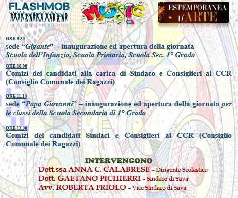 «Una manifestazione in cui gli studenti avranno la possibilità di far conoscere la propria espressività attraverso vari linguaggi artistici – commenta Anna C. Calabrese, dirigente dell’I. C. Giovanni XXIII di Sava – sia mostrando gli esiti dei propri lavori, sia illustrando il proprio percorso artistico e le metodologie utilizzate per la loro realizzazione».